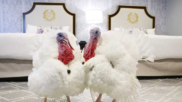 Giving thanks: Two turkeys receive presidential pardons ahead of Thanksgiving